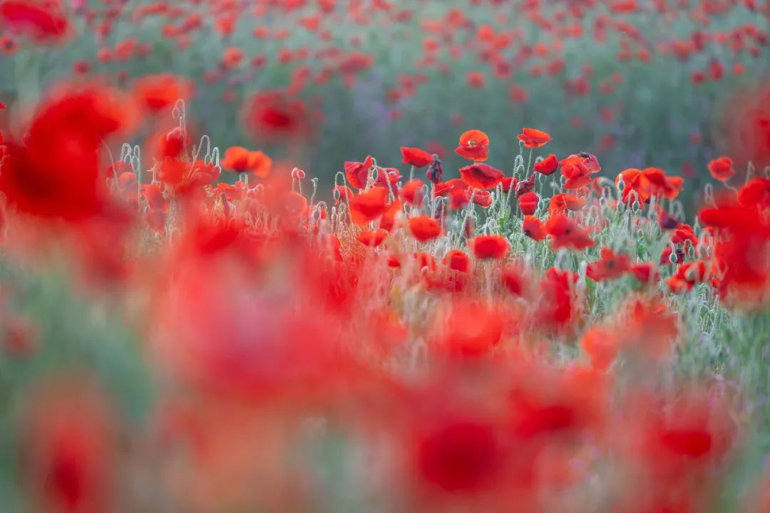 虞美人纤长的根茎随着风飘动像极了美人在风中起舞,目之所及,皆是美好。