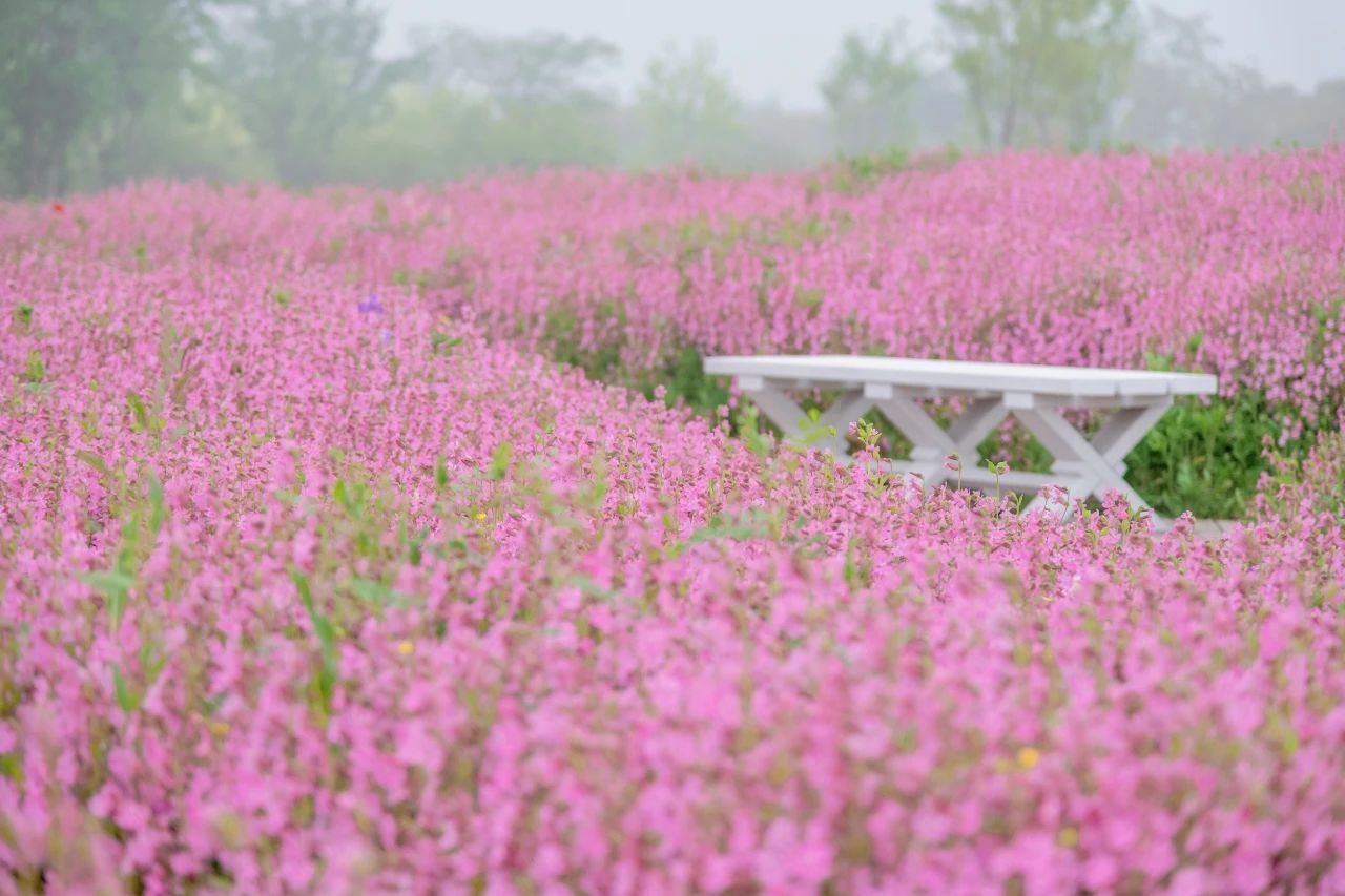 在春日暖阳的沐浴下,花开海上生态园内粉红的花海已然盛开。雪轮花把春天的浪漫带进了公园,迎着春风,徜徉于花海间,是别样的惬意。