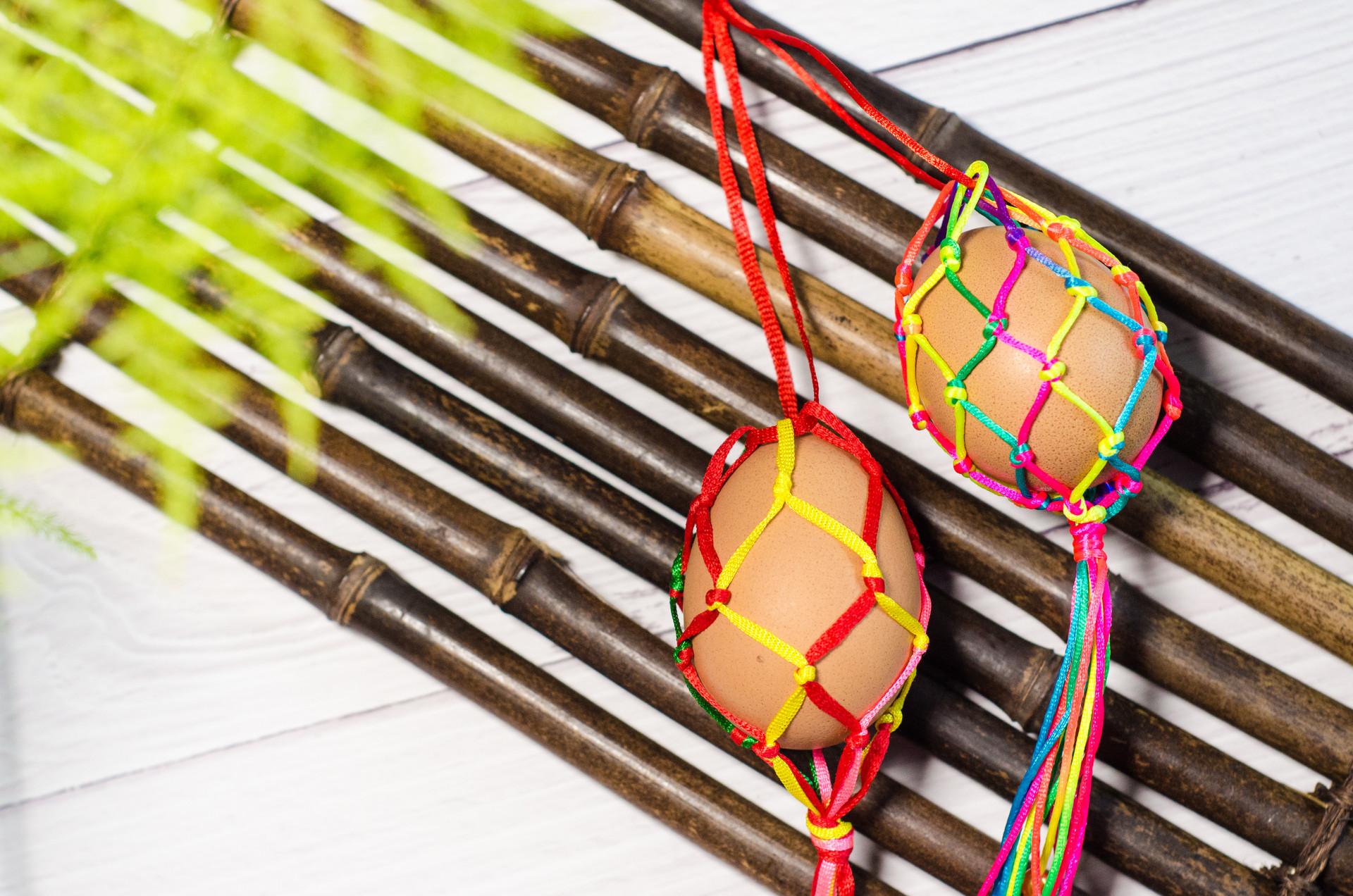 除了吃以外,在立夏时节,鸡蛋还有其他玩法。钩织漂亮的蛋网,放入鸡蛋,挂在孩子胸前;或是与孩子一起,一人手持一个鸡蛋,来一场家庭斗蛋比赛,也是十分应景的亲子活动。