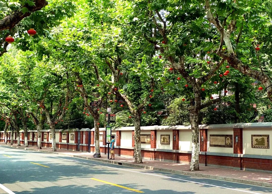 道路两边粗壮的悬铃木浓荫蔽日,用绿影点缀“虹口文脉缩影”。沿街文化墙上嵌有石刻浮雕,印刻着秋瑾、鲁迅、郭沫若、丁玲、冯雪峰等人的肖像和名言,组成了一幅历史文化名人长卷,再现岁月的足迹,勾勒出进步文化的不朽和珍贵。