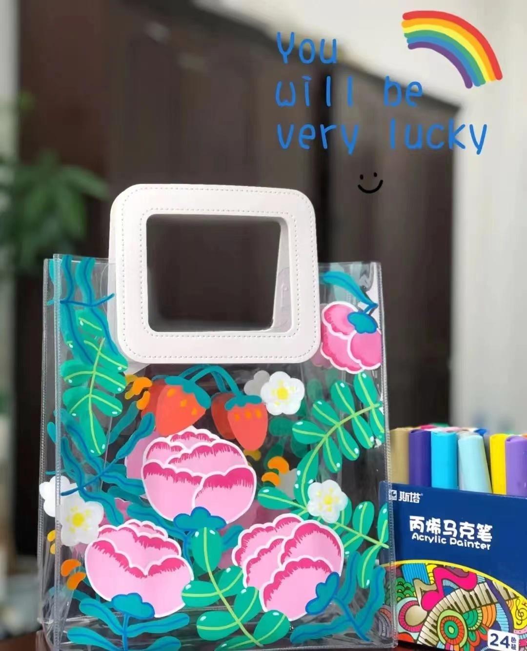 爱是流动的,也可以是永恒的,不如送一份满含爱意的手作——彩绘手提包,将对母亲的爱,画在手提包上表达出来,成品特别亮眼。