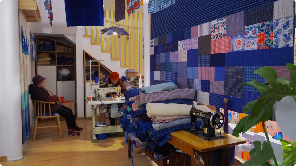 会客厅的的斜对面,就是新江南蓝布厅。店内置有众多土布产品,做工精湛,独具一格。