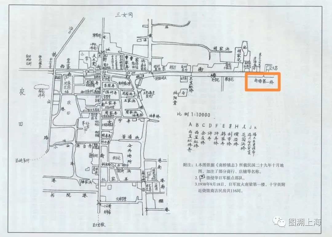 1940年南桥镇区示意图中的南塘第一桥原址。来源:图溯上海。