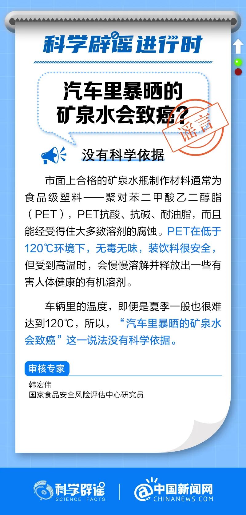 车辆里的温度,即便是夏季一般也很难达到120°,所以汽车里暴晒的矿泉水不会致癌。