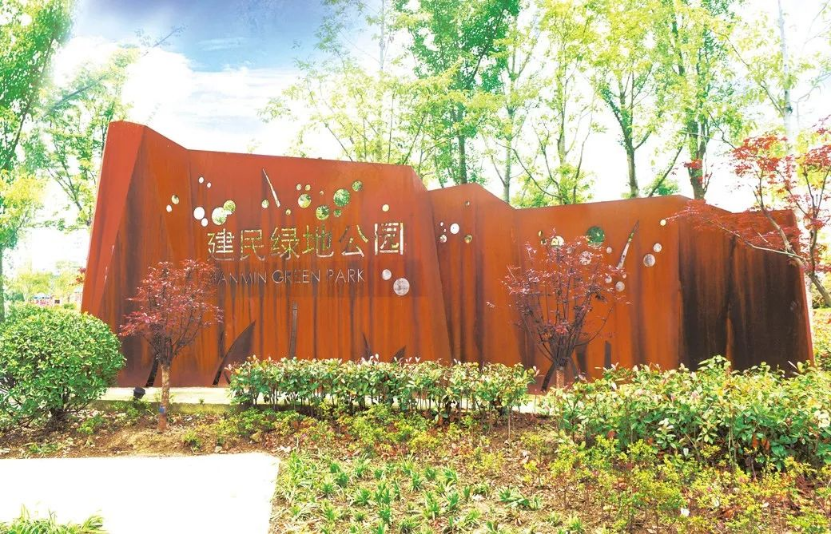 绿树成荫的建民绿地公园位于中山北路沪宁铁路西南侧,原址为建民村动迁地块的一部分,于原棚户区旧房拆除后开始兴建,占地面积约4万平方米。公园绿化率高达80%,配套设施较为齐全,公园内有儿童游乐设施、健身器材与篮球场等。