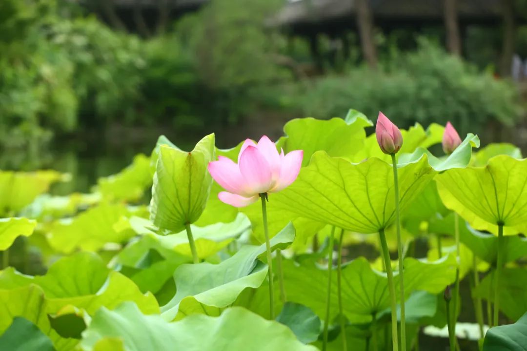仲夏时节,迎来芒种。芒种又名“忙种”,芒种过后的一周内,气温逐渐升高,天地万物感应到这份生机,都逐渐忙碌起来。古猗园内荷叶田田,在不可无竹居南、石韵馆北、鸳鸯湖、观月台前水域里,古猗园首批塘栽荷花悄然绽放了。