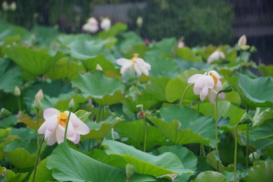 醉白池以“出诗入画·为荷而来”为主题,匠心构思、技艺精巧,通过以荷为媒、诗词传情、多元展呈、线上线下全方位多角度于一体的形式,让市民游客欣赏花之美,感受荷之魂,打造盛夏时节的荷文化盛宴。
