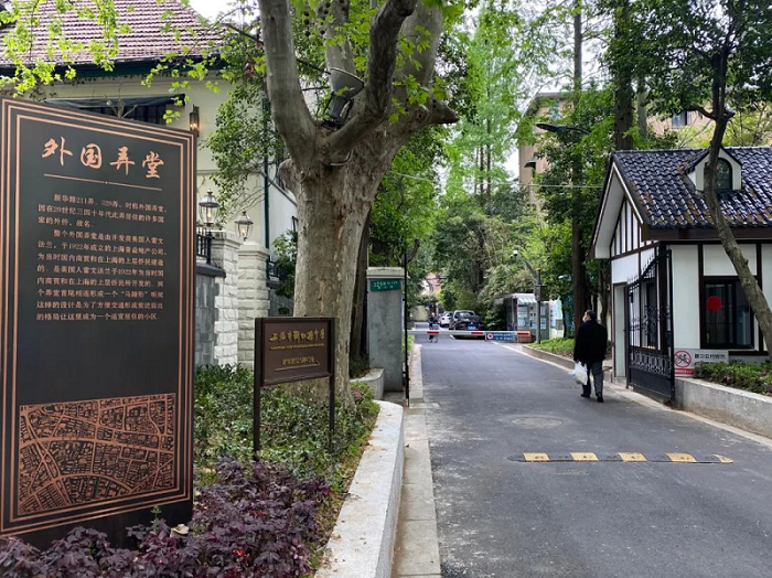 新华别墅,包含新华路211弄和新华路329弄两条弄堂,整体呈马蹄型,为著名建筑师邬达克规划设计,内有涵盖英、美、德、西等多国风格的29栋花园住宅,始建于上世纪二十年代,距今已有近百年历史。上世纪三四十年代,这里住着许多国家的外侨,因此也被叫作“外国弄堂”。
