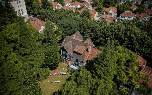 新华路329弄36号整座建筑新颖奇特,装修豪华。这幢房子的外形是沪上少有的双层圆形花园别墅,也被称为“蛋糕房子”。
