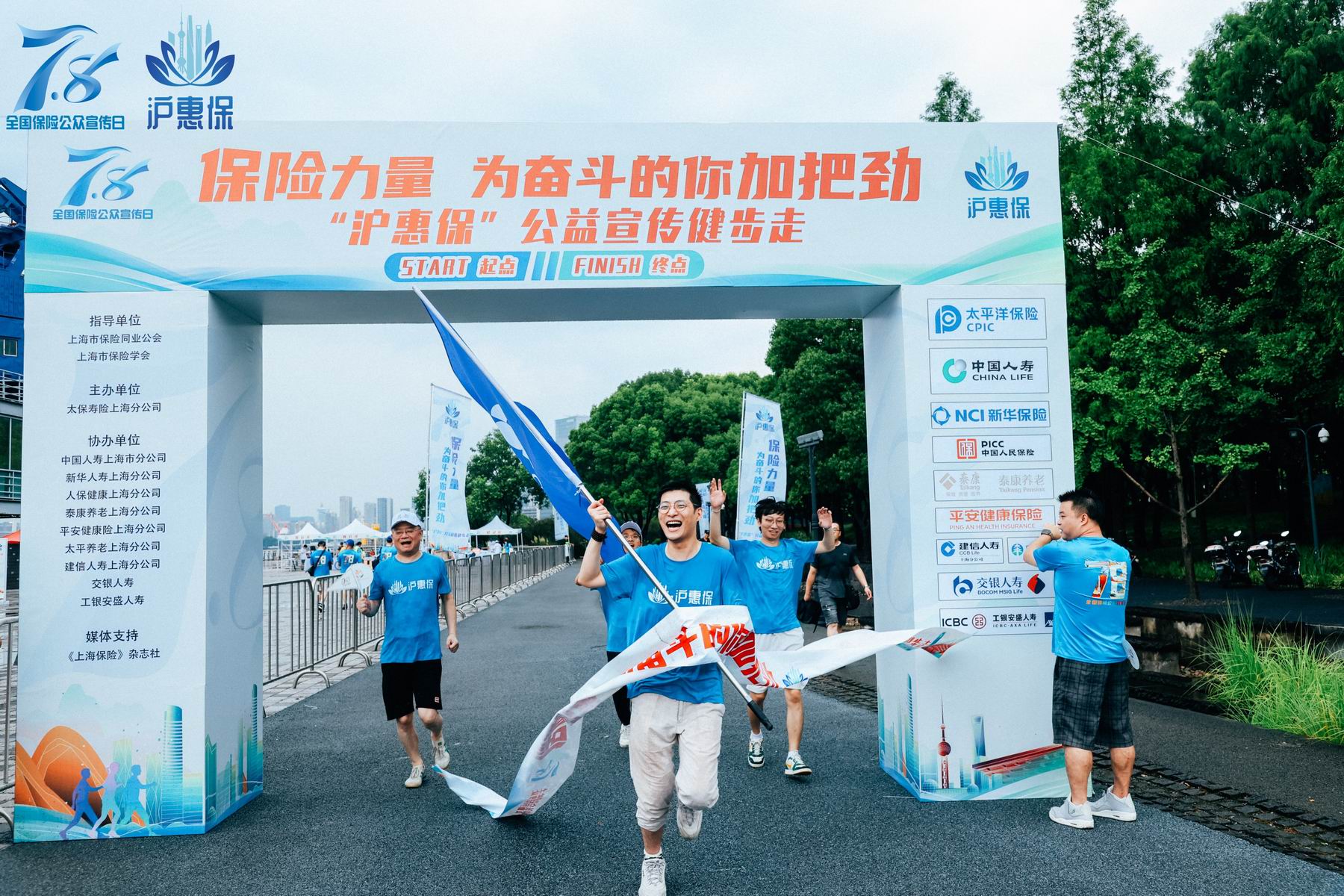 7月8日上午,中国人寿上海市分公司党委委员、副总经理林乐平带队参加“沪惠保”公益宣传健步走活动,活动地点为上海市世博公园,路线全程大约为5公里。大家按照路线指示牌,沿着预定路线,或跑步或健步走,呼吸雨后清新的空气,欣赏沿路浦江边的美景,以实际行动倡导健康、绿色的生活方式,展现了上海国寿员工“奋进新征程、建功新时代的”昂扬风貌。
