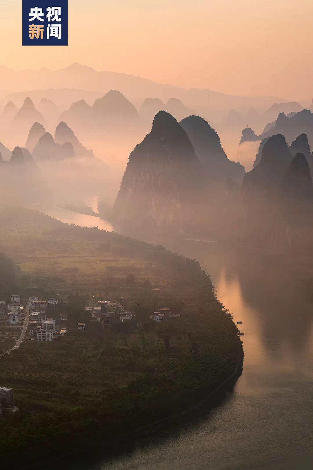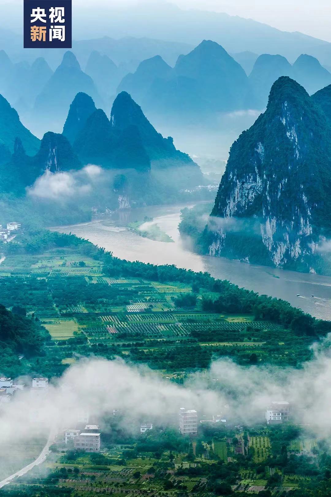 广西阳朔县属于典型的喀斯特地貌,漓江穿行而过,一个个独立的山峰拔地而起,造就了“山如碧玉簪”的独特美景。