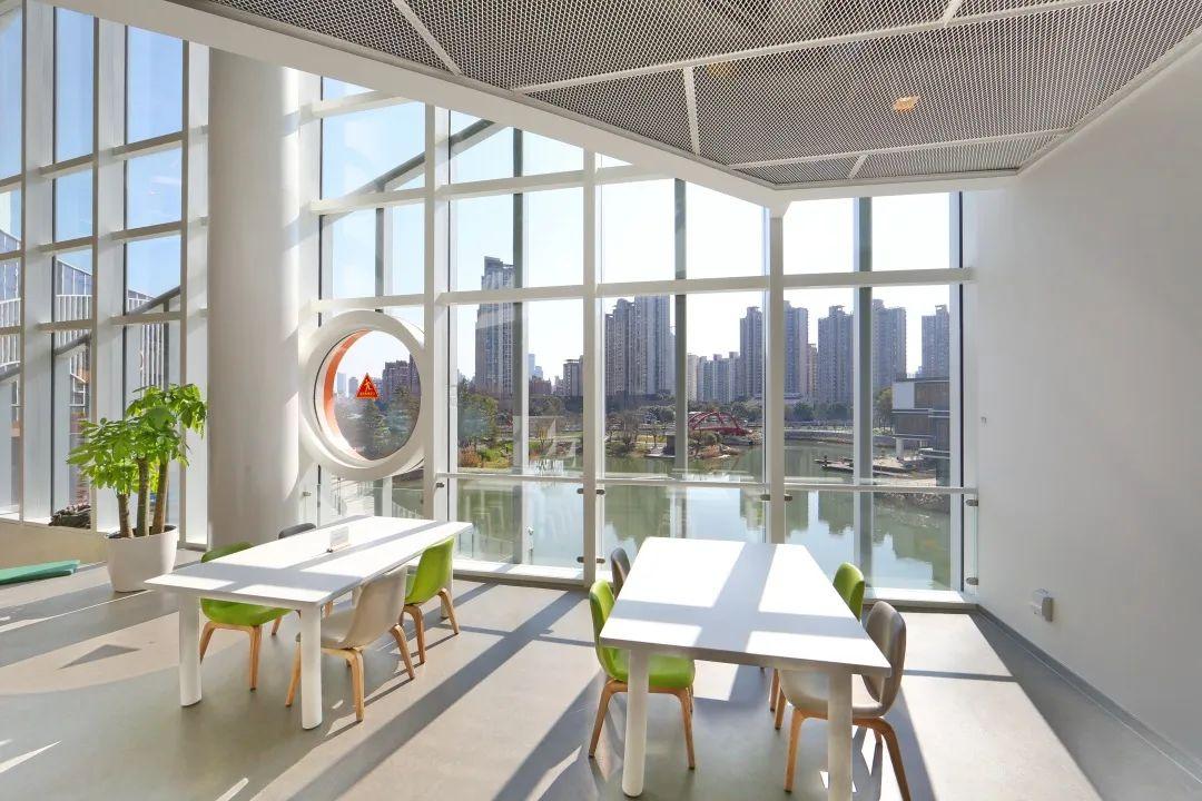 新落成的长风馆北临长风公园,南望苏州河畔。在半马苏河公园内可以看到坐落其中的拱形建筑——上海市少年儿童图书馆(长风馆),该馆藏书超50万册,是孩子们的“阅读王国”。