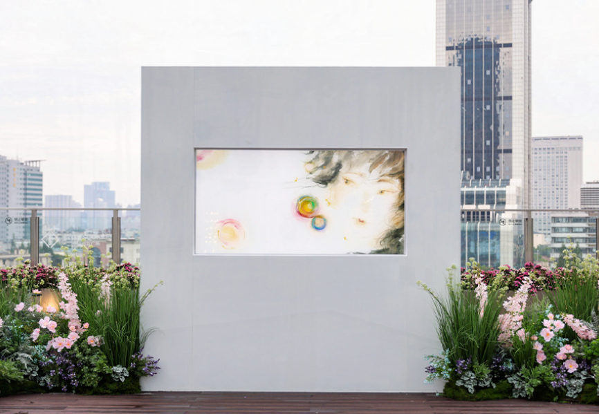 展览位于中信泰富广场7层综合体空间,分为三个主要展区,室内陈列纸本水墨画作品,室外露台则有三幅大型艺术装置作品展出。