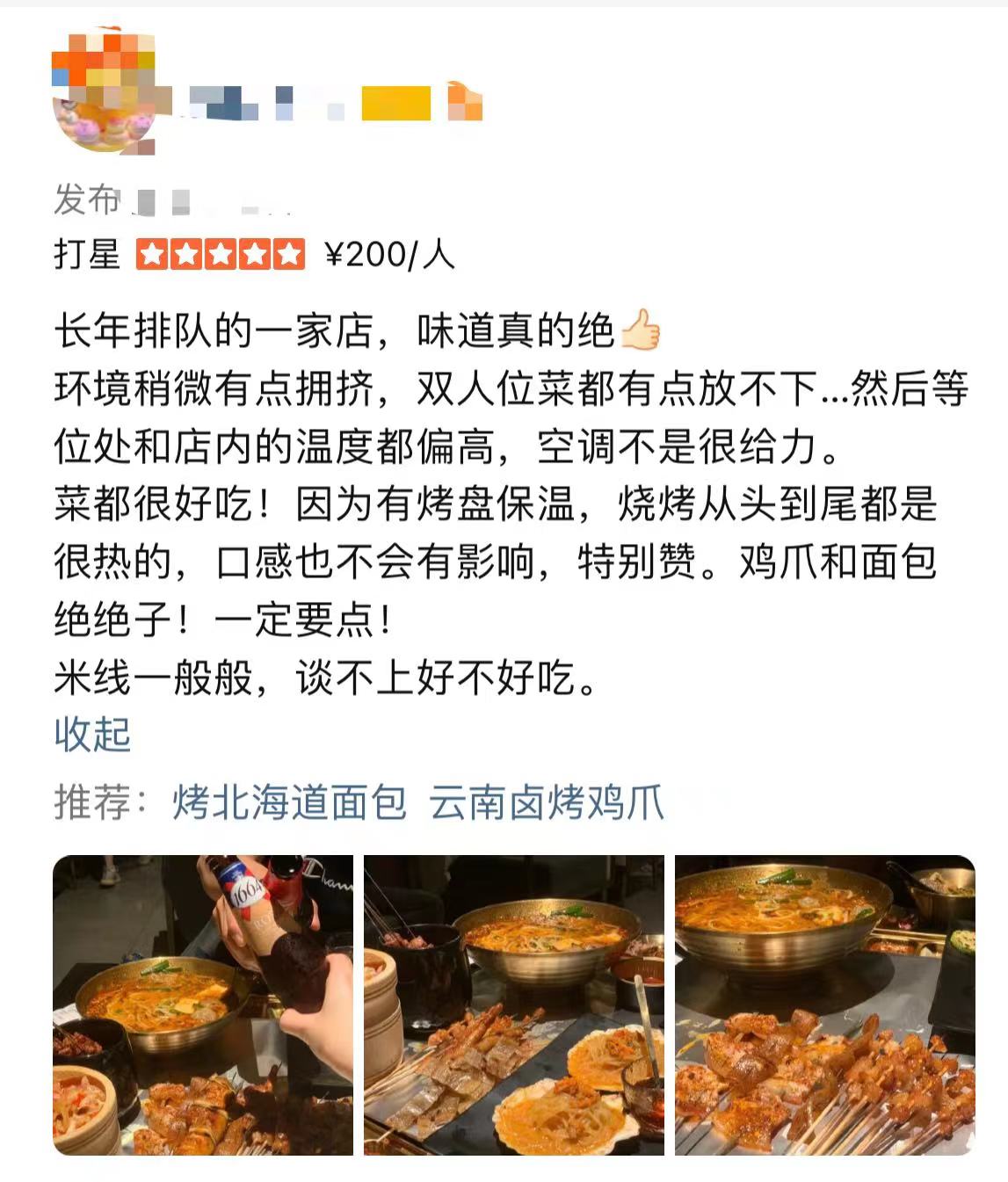在这儿不仅能吃到烤串,还有云南人最爱的米线。不过有网友评价上海的店铺环境有点拥挤,米线口味一般。但从整体评分上看,上海店却比云南店高。