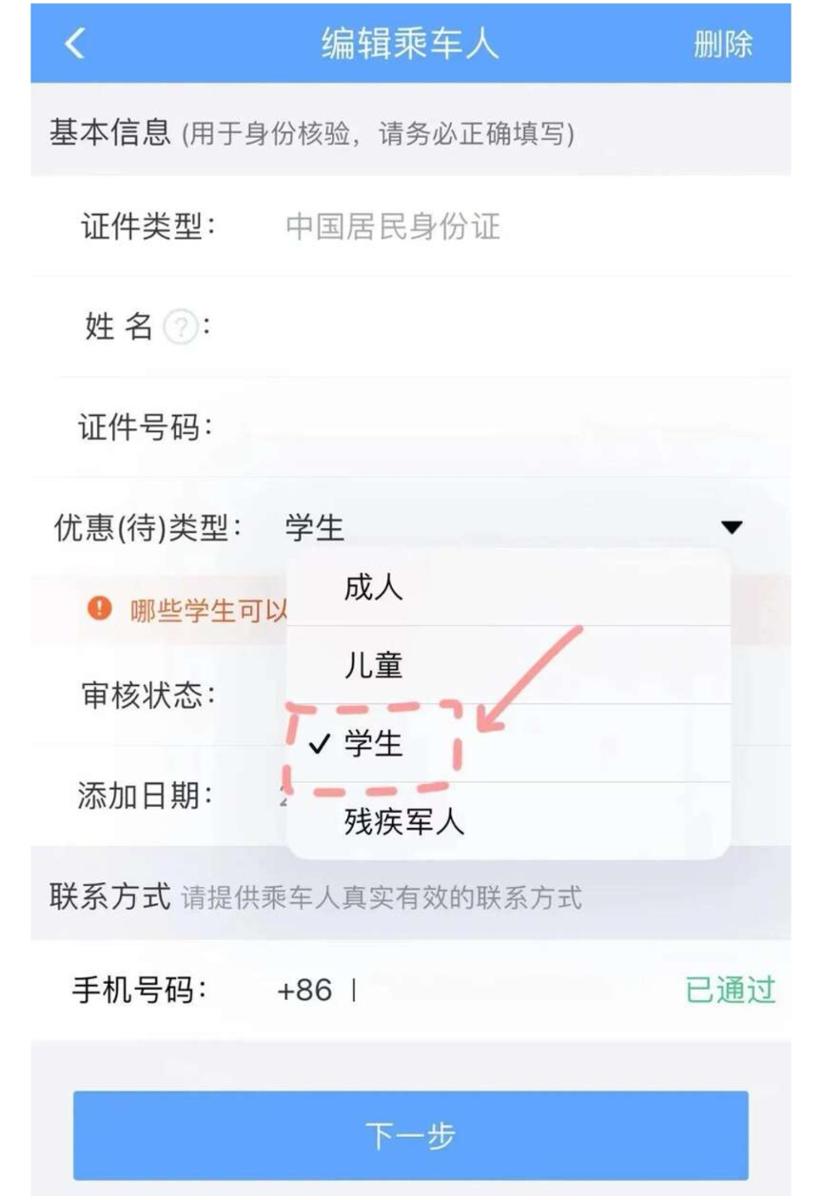方式二:通过铁路12306网站、铁路12306APP购买学生票。在添加乘车人时,将优惠类型选为学生。