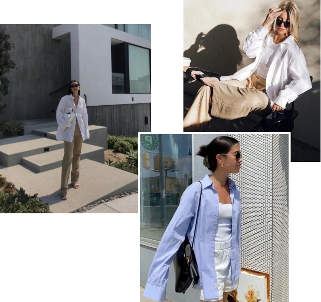 百搭好看、实穿度高的衬衫要有具备以下属性:整体偏oversize、微微落肩、长度刚好遮住PP、款式简洁。