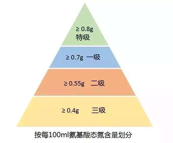 根据我国酿造酱油的标准(GB18186-2000),按照氨基酸态氮含量可以将酱油分为特级、一级、二级、三级。若氨基酸态氮<0.40g/100ml,即表明酱油为不合格产品。