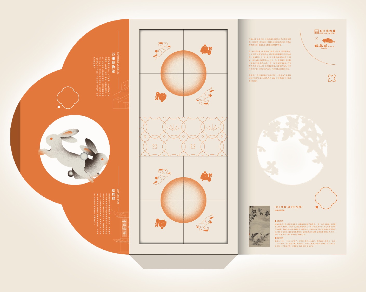 当月饼与文物联系在一起会碰撞出怎样的火花?近日,苏州博物馆与松鹤楼共同推出了“桂兔·望月 月饼礼盒”。礼盒的灵感来源正是苏州博物馆藏——清代张敔的《月下桂兔图》。