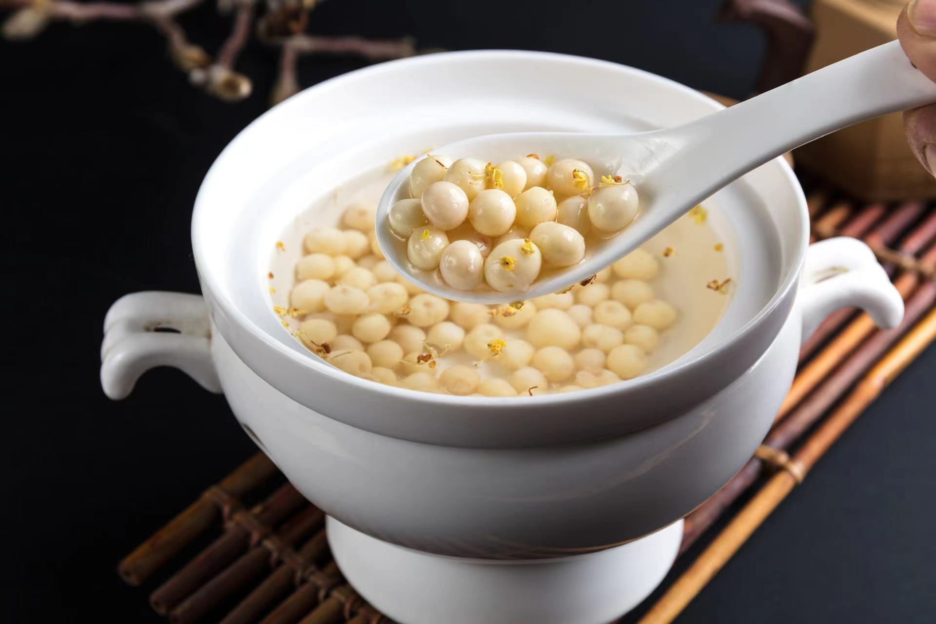 而在苏州,初秋正是鸡头米上市的季节,到了十月左右便会下市。鸡头米又称“芡实”,是“水八仙”之一,口感软糯、细腻、清甜。用鸡头米加冰糖熬制成一锅糖水,再撒上一把桂花,这便是苏州秋天的味道。这种鲜美的时令小食,也成为萦绕在众多江苏人心中的甜蜜记忆。