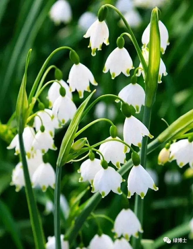 雪片莲是石蒜科、雪片莲属的球根花卉。它鳞茎娇小,呈球形,株高30cm左右。叶片和洋水仙近似,带状,外被白粉。花茎的顶端总苞内,洁白的钟形花冠恰似一串串小铃铛;每片瓣尖的边缘处还有一绿色的斑点。