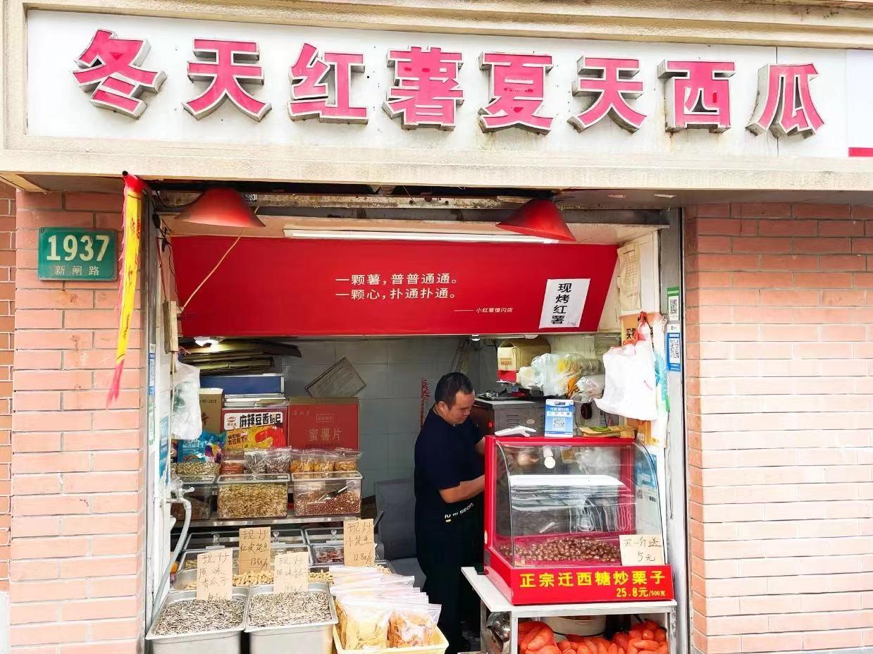 离开“新长发名特食品店”,步行约1.3公里,就会遇见一家路边店,店名非常可爱,叫“冬天红薯夏天西瓜”。