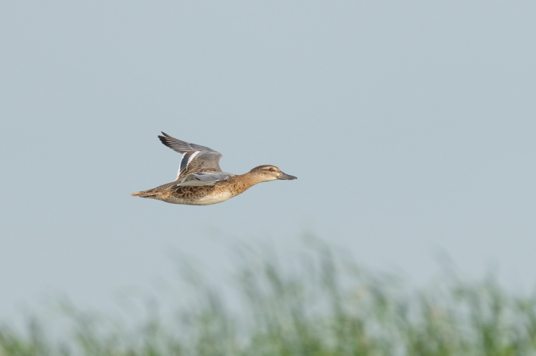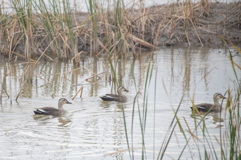 雁鸭类除少数种类外,多数相对迁徙时间较晚,在十月下旬开始集中大量飞来,主要在滩涂湿地及湖泊栖息,大部分种类会在上海度过整个冬天,在次年3月再离开,主要包括绿头鸭、斑嘴鸭、罗纹鸭、针尾鸭、琵嘴鸭、豆雁等,白眉鸭则是一种较早迁徙的雁形目鸭科鸟类,从八月到十月都有途经个体被记录到。