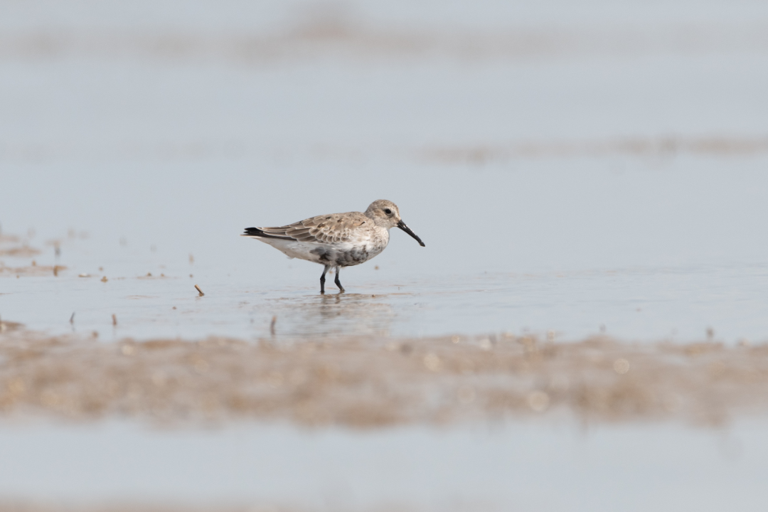鸻鹬类主要包括鸻形目的鸻科、丘鹬科、反嘴鹬科等种类,这些擅长远距离飞行的鸟类每年秋季会短暂在沿海滩涂停歇,主要取食沙蚕、螺类、蟹类等底栖生物,具体有黑腹滨鹬、红颈滨鹬、黑尾塍鹬、环颈鸻、蒙古沙鸻等。