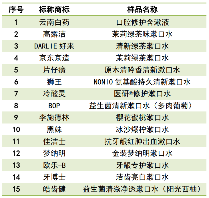 另外还在2款成分表和销售页面都显示无酒精的样品中检出微量酒精(浓度<1%),企业表示可能是生产线消毒后的酒精残留在加工过程中与漱口水发生混合导致。