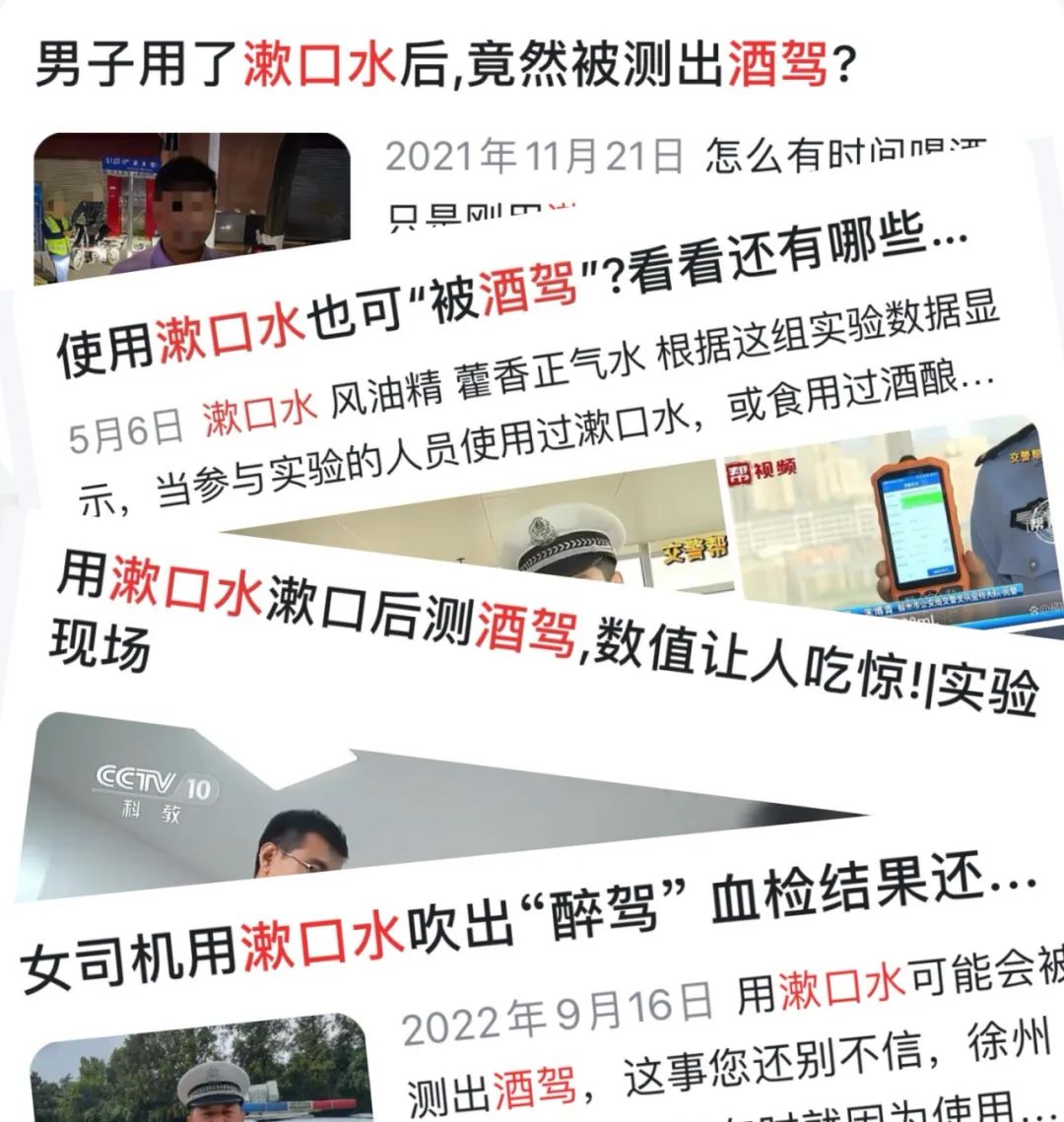有多款漱口水在销售页面宣称“0酒精”,其中牙博士的洁齿亮白漱口水(销售店铺:拼多多牙博士家居旗舰店)在收货后发现其瓶身成分表含酒精,实测浓度为2.5%。若消费者根据销售页面信息挑选无酒精型漱口水,此种情况易造成选购到不符合需求的产品。