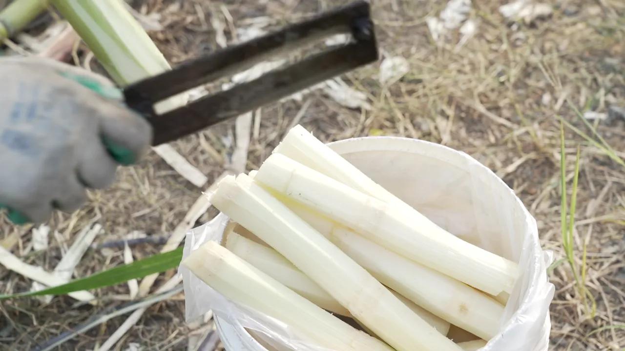 除甘蔗外,三里村的十月芦粟也迎来采收好时节,它们笔直地簇拥在一起,头顶的穗儿饱满,一个个低垂下“脑袋”。种植户乔师傅穿梭其间,动作麻利,一刀一根,不一会儿就堆满了一车。“别的地方找不到量那么大的,芦粟放不久,为了保证口感,我每天从宝山过来,一次买100捆,一捆10根。”水果店老板郭先生不嫌路远,脸上挂满笑容,直呼“卖得很好,这些进货量一上午就能卖出去。”