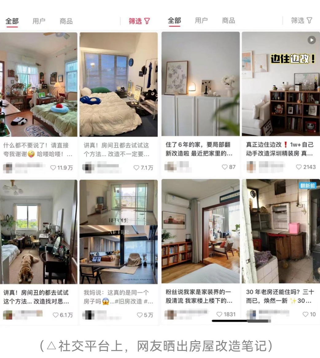 在豆瓣上,一个名为“请来参观我的房间”小组吸引了47万多“粉刷匠”。随手一搜,社交媒体上#家装人双十一#话题之下有2万多篇房屋改造干货笔记。