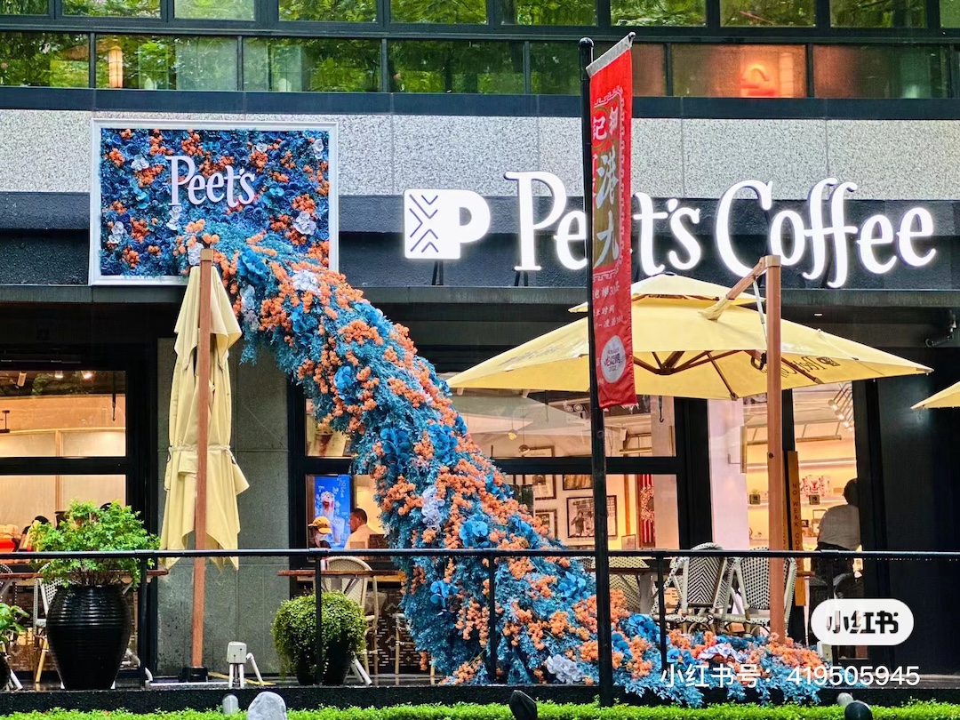 继茉莉花瀑布之后,位于东湖路的Peet’s Coffe又换上了秋季新皮肤——桂花瀑布。如果要用一种味道概括上海的秋日街头,那桂花想必会是很多人的答案。从画框中倾泻而出的桂花瀑布,让街头又多了一份浪漫。