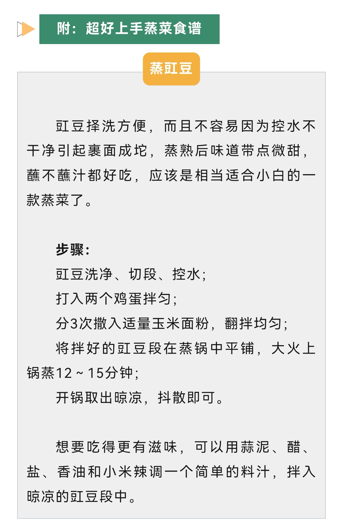 蒸菜翻车了?可能是这几个原因蒸菜的制作非常简单:蔬菜+面粉或杂粮粉→蒸→蘸醋蒜调味汁。