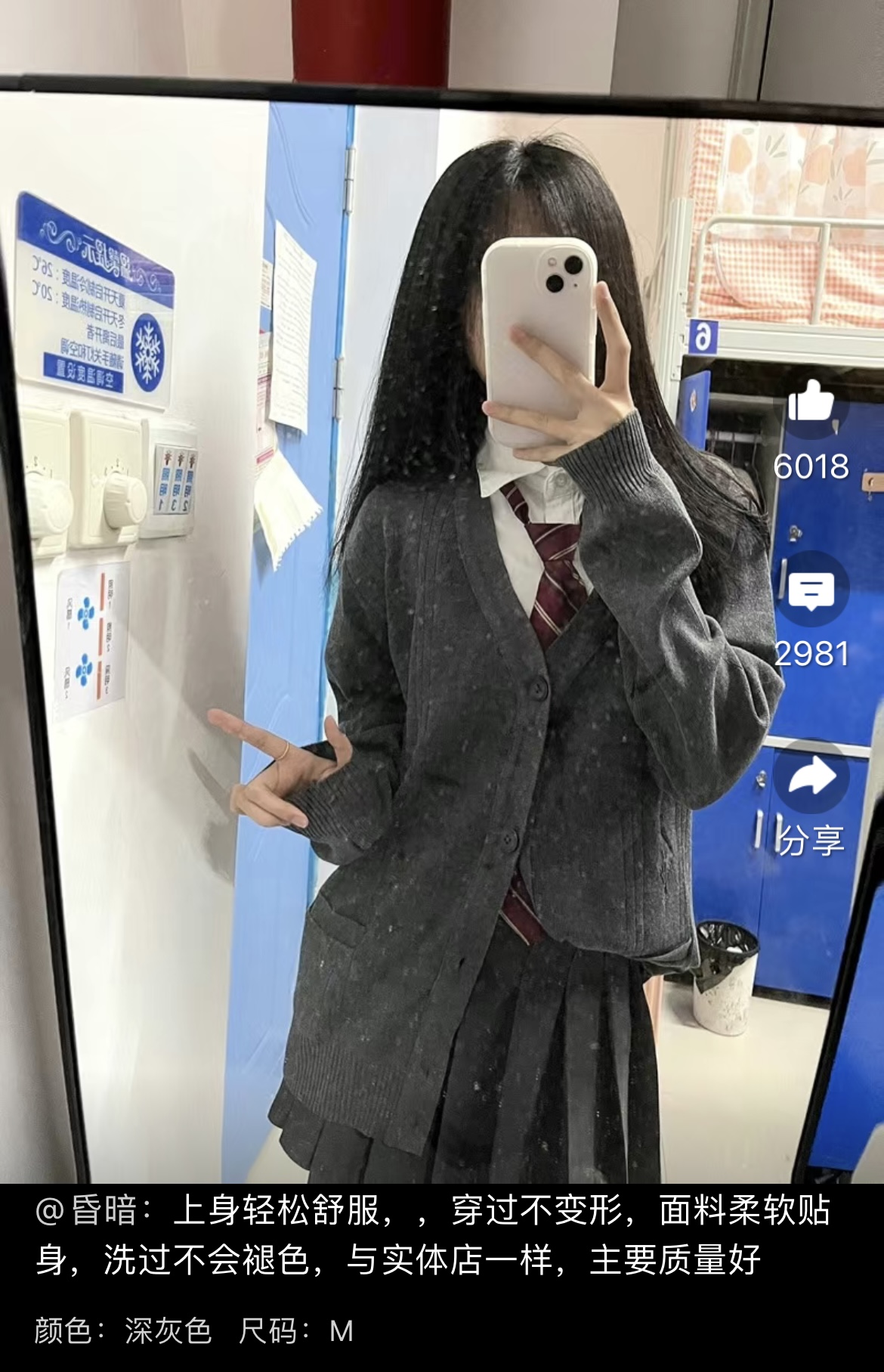 “上身轻松舒服,穿过不变形,面料柔软贴身,洗过不会褪色,最重要的是价格低、质量好。”商品下方的评论区,一位女孩晒出了老头开衫的买家秀,内搭白色衬衫,再配上百褶裙和小皮鞋,和笔者在日常中看到的JK风穿搭并无差别。这样的评论不止一条,清一色的“JK女孩”买家秀和一群老大爷们的粗糙买家秀形成了强烈的对比,甚至有人调侃道:“每有一个少女穿着毛线开衫打卡拍照,就有一个老头失去他的制服。”