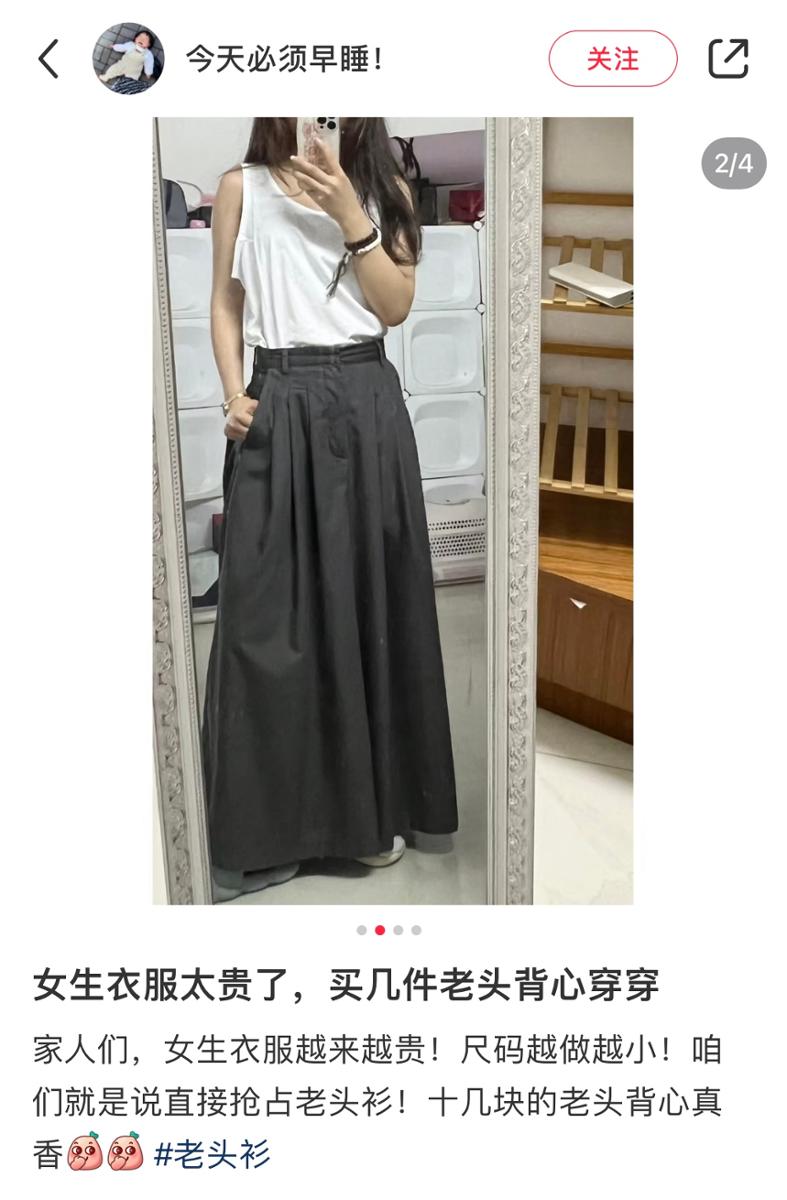 “纯棉、透气、宽松、好穿、便宜”,某社交平台上,一件平平无奇的中老年背心“大杀四方”,女孩们直呼超值——