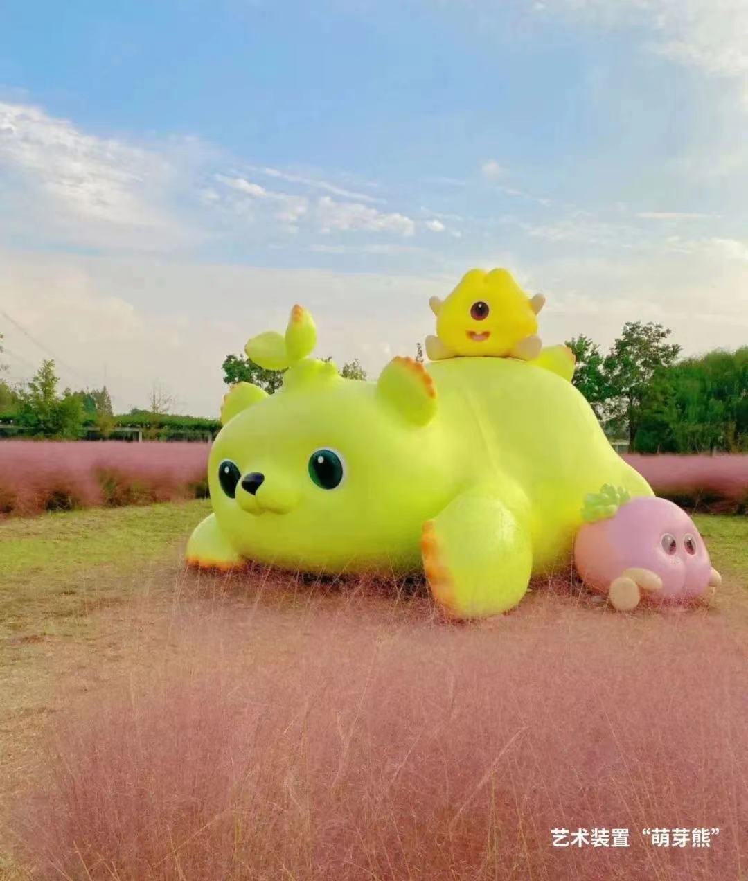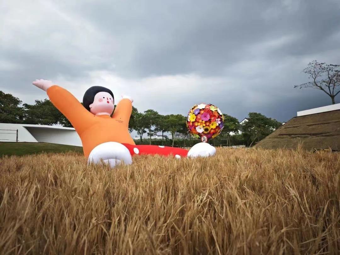 这里既有“绿之初”、“绽放?千年”、“净”等艺术装置,也有萌芽熊、稻草人等趣味场景,更有粉黛的紫色花海、丰收的金色稻田。