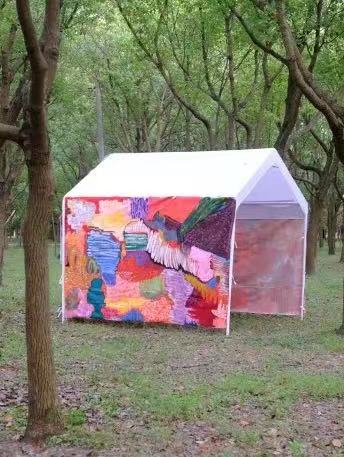 沿途还散落着五彩缤纷的帐篷绘画综合艺术作品,艺术家们在帐篷上创作出丰富多彩的图案,为游客提供了观赏空间和临时的休息场所。