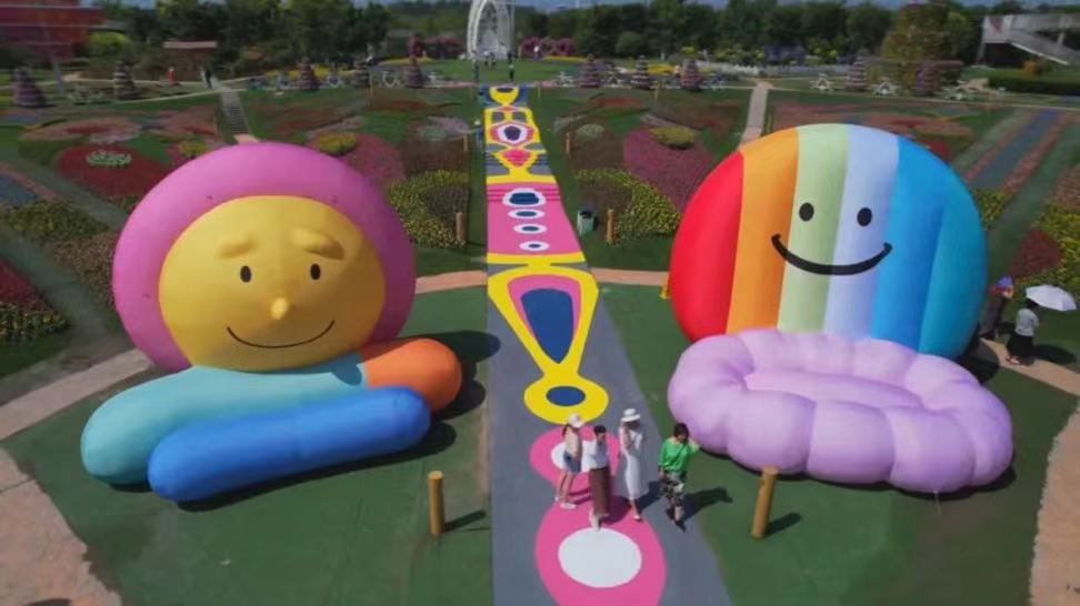 在浦江郊野公园奇迹花园区,花精灵城堡上开出的硕大而又奇异的花朵十分夺人眼球。巨型蝴蝶、笑脸沙发、七彩云树等艺术装置,让人享受在花园里的艺术盛宴。