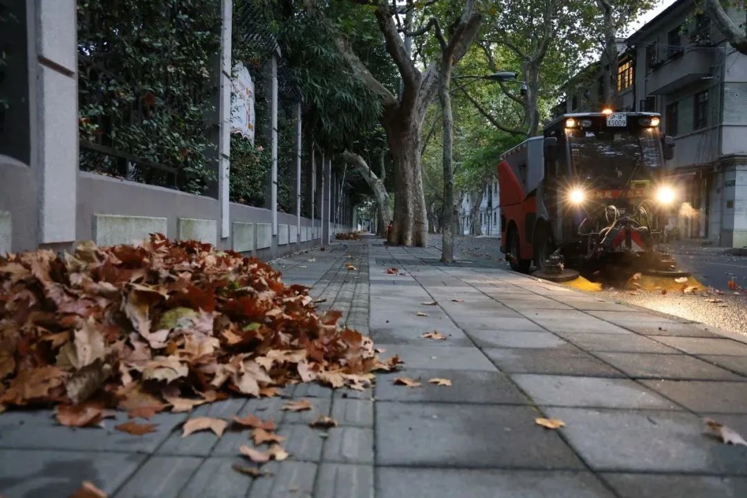 除了日常的巡回捡拾外,环卫队伍还根据实际情况、天气情况,对作业模式进行优化调整,利用机械化设备进行辅助作业。如遇降雨、雾霾天气,环卫人员会对道路上的落叶进行全面清扫保洁,确保落叶不遮蔽雨水口、不影响市民正常通行,确保道路的安全畅通。