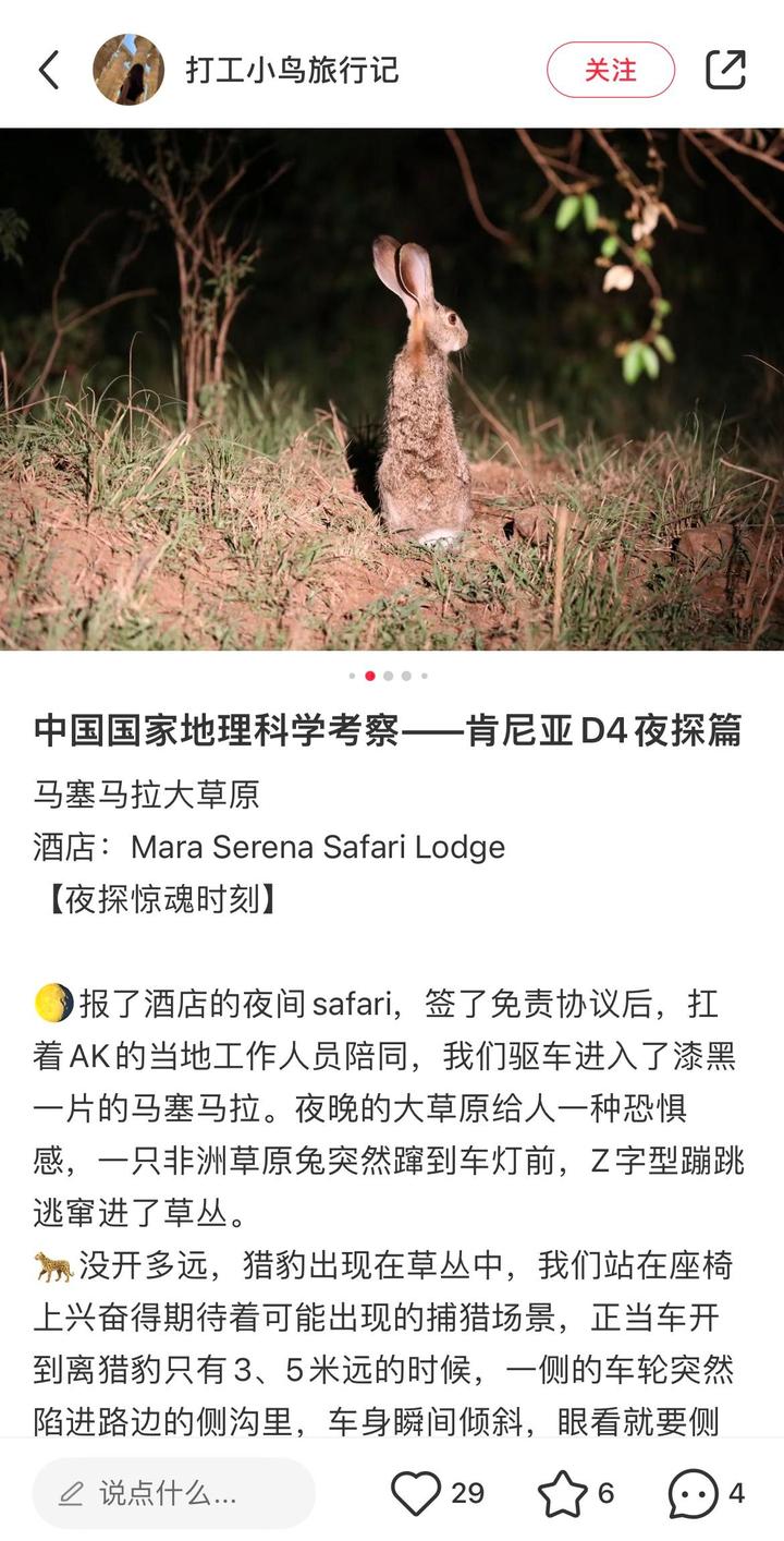 今年国庆假期,王鸟鸟花了39800元,跟随中国国家地理科学考察团开启了为期8天的“环球野生动物考察”活动。对上班族而言,这是一笔不小的开销,但王鸟鸟在路线推出后还是毫不犹豫地下了订单。“自己去看动物大迁徙当然可以,但没有了专业讲解,可能既不知道是什么动物、珍稀程度如何,也会错失一些动人的时刻。”