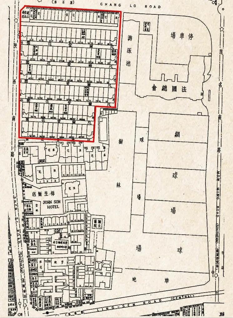 1925至1929年,长乐邨由安利洋行设计,华懋地产有限公司承建完成。长乐邨也被称为“凡尔登花园”,属于典型的花园式里弄住宅,行列式布局,有7排楼房共129个单元,占地21474平方米,建筑面积18916平方米。建筑为砖木结构,前部2层,后部3层,为法式住宅风格。