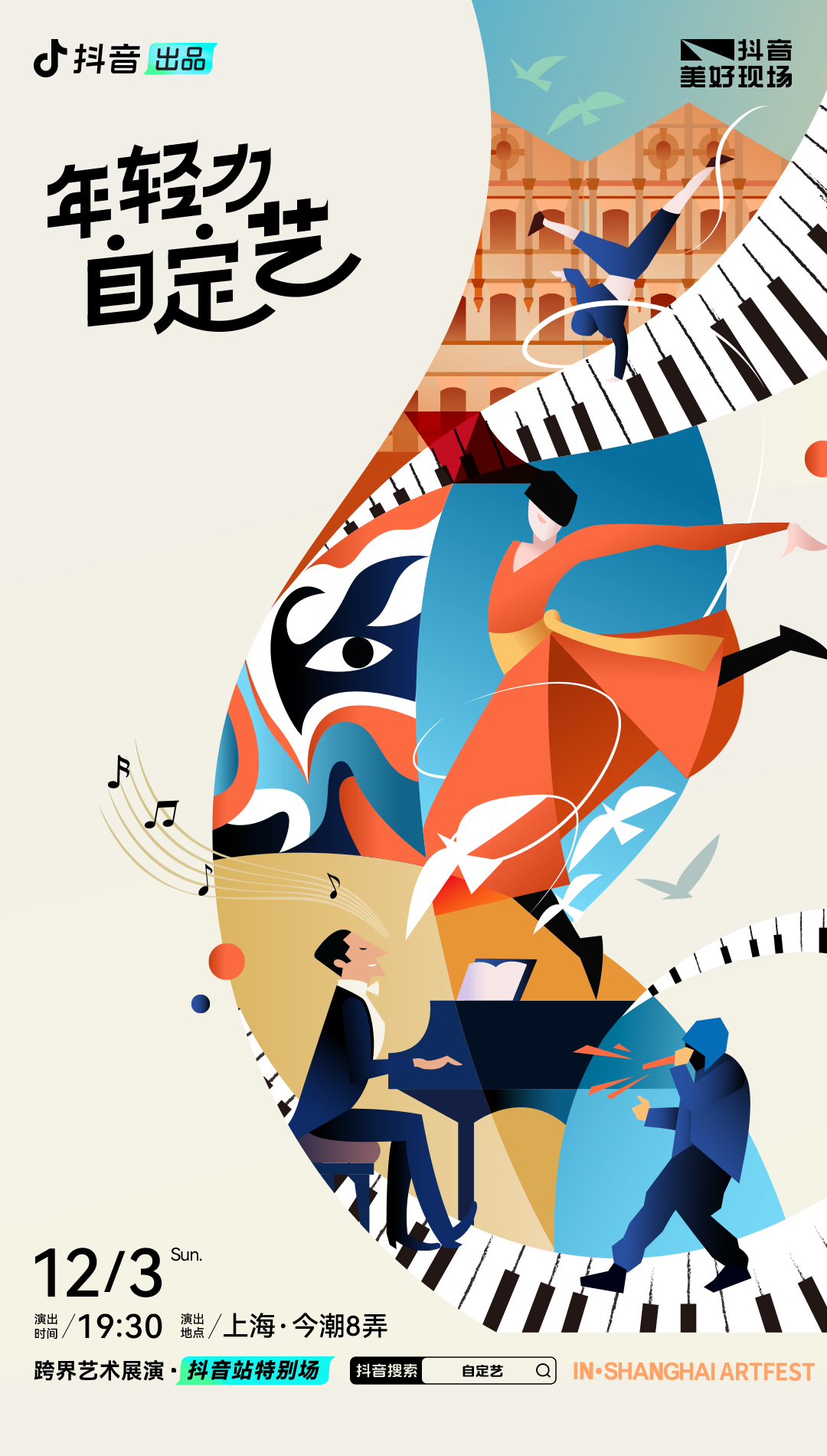 本次跨界艺术展演以风格建筑和特定场域的公共空间为主要载体,多元呈现来自全球的公共艺术作品与当代艺术展,包括装置、雕塑、绘画、影像、声音、灯光、舞台表演等。《年轻力·自定艺》跨界艺术展演将尝试在公共空间内,把视觉艺术与舞台表演进行深度融合,打造沉浸式、交互性的艺术现场,邀请来自演艺、视觉等多领域的艺人和艺术家共创复合型展演现场,拓宽艺术边界与受众,并通过抖音平台进行线上直播。