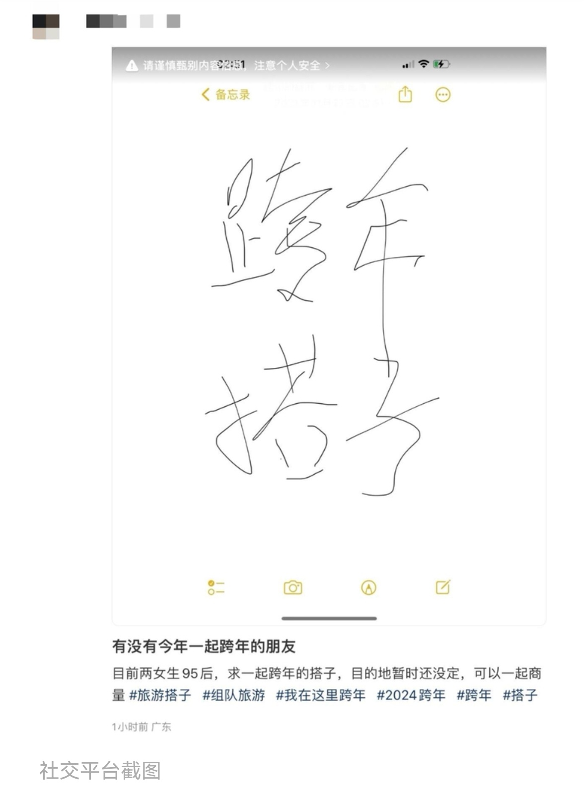 “寻找跨年搭子,目前目的地没定”“西安跨年搭子有无”“求澳门跨年搭子,12.30出发”……