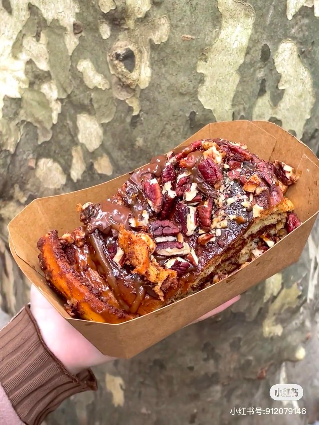 “排队20分钟,买完单后在梧桐区逛一圈、买杯咖啡,半个小时后温暖馥郁的肉桂卷就新鲜出炉了。趁热咬一口,淡淡的肉桂香、甜甜的焦糖酱、油润松软的面包体、脆脆的坚果,简直就是冬天的甜蜜炸弹。”一位消费者分享了她的冬日肉桂卷体验。最近,永康路上新开了一家名叫TonTon的面包店,店里铺满碧根果的肉桂卷个头比一只手还大,既饱腹又御寒。络绎不绝的消费者们前来打卡,只为品尝一口初冬的肉桂卷。