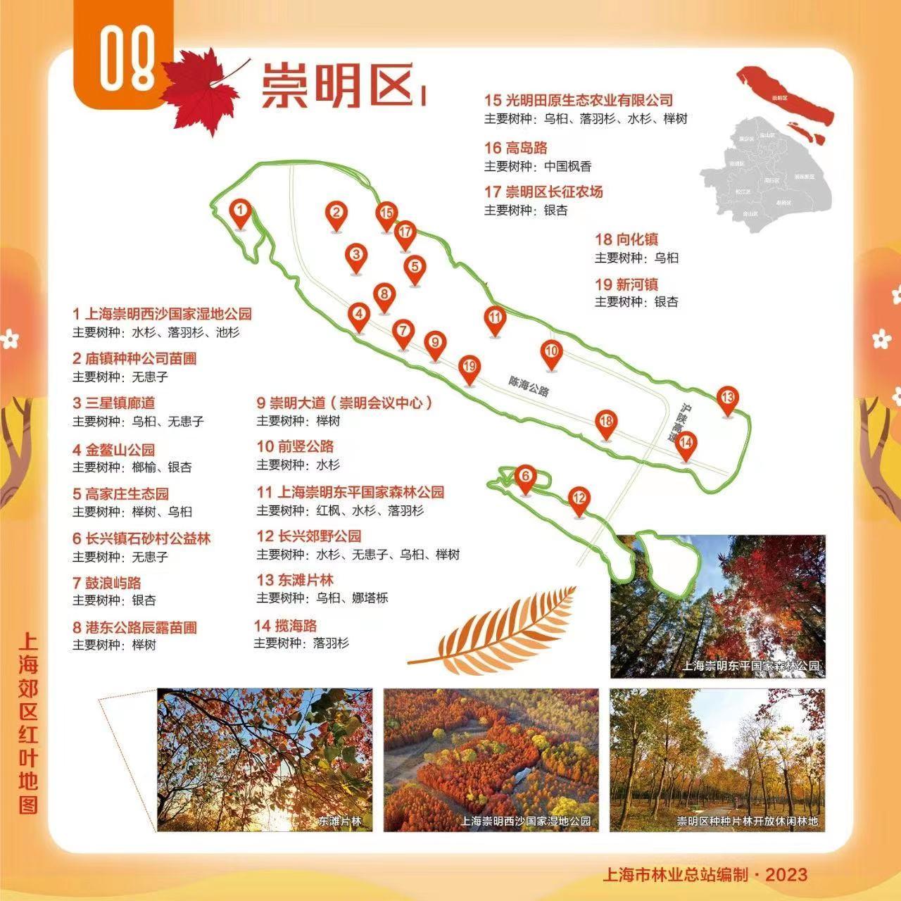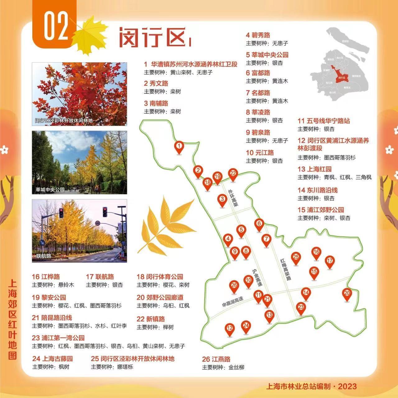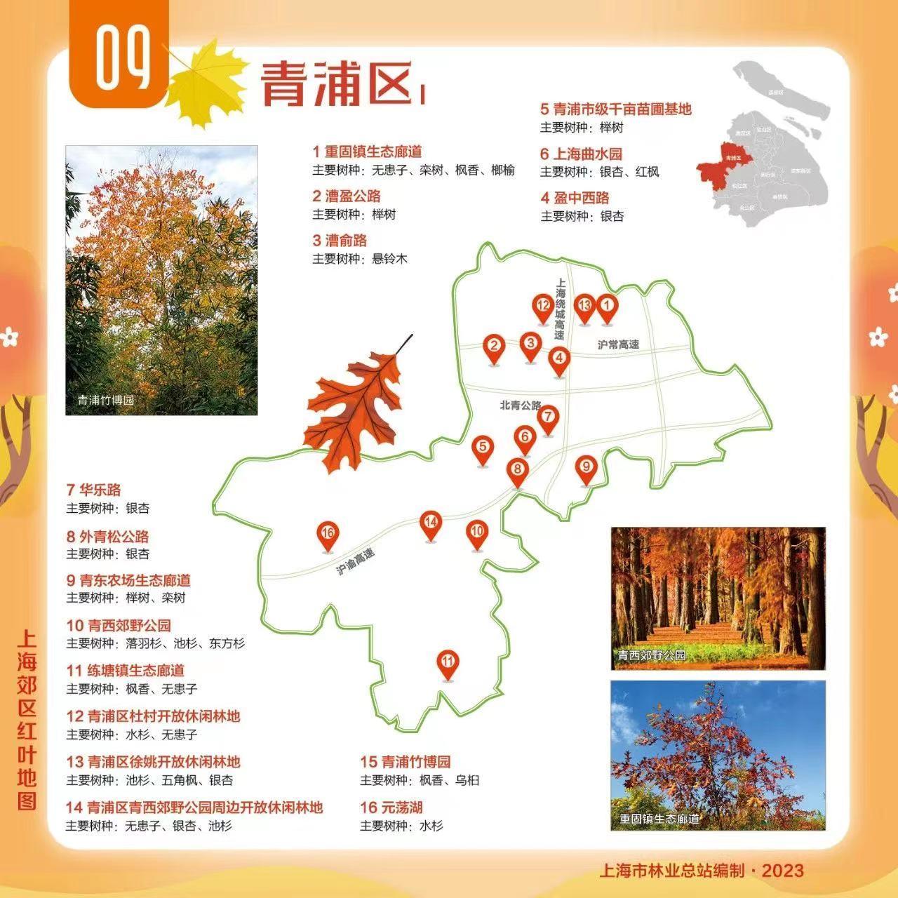为大家送上郊区红叶地图,包含青浦、崇明、松江等9个郊区,让我们一起欣赏乡村郊野的“美拉德”色彩!