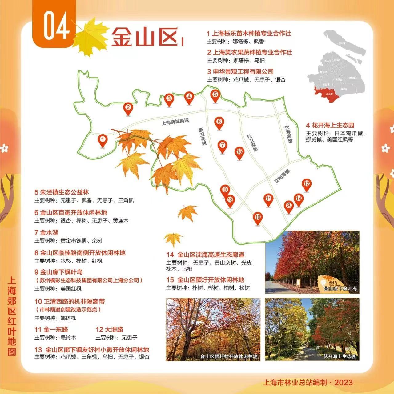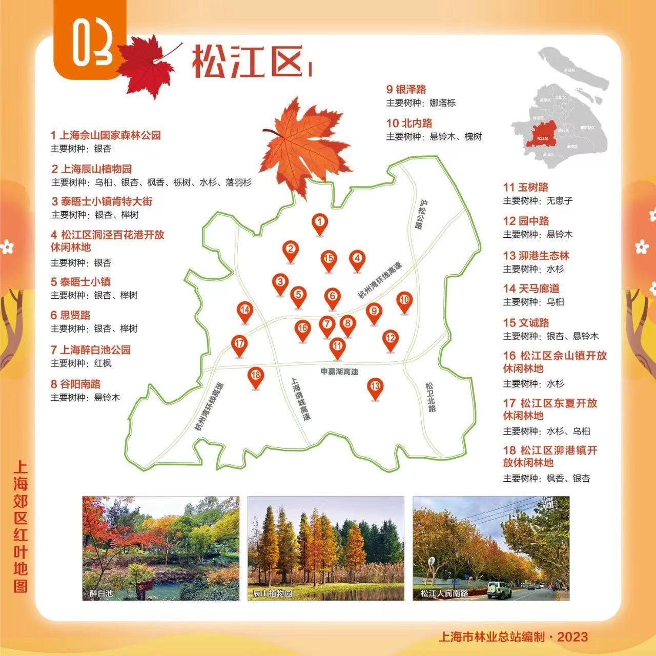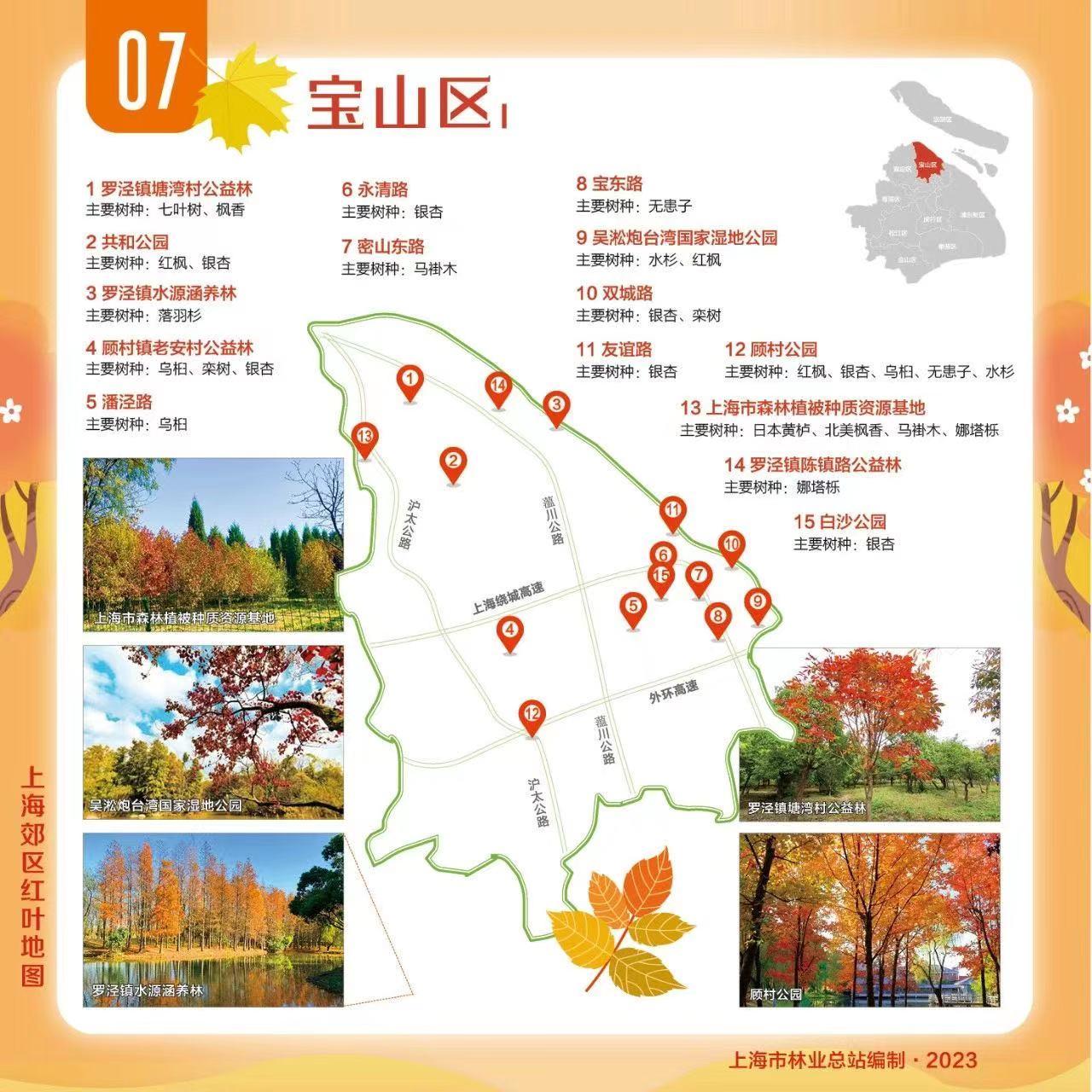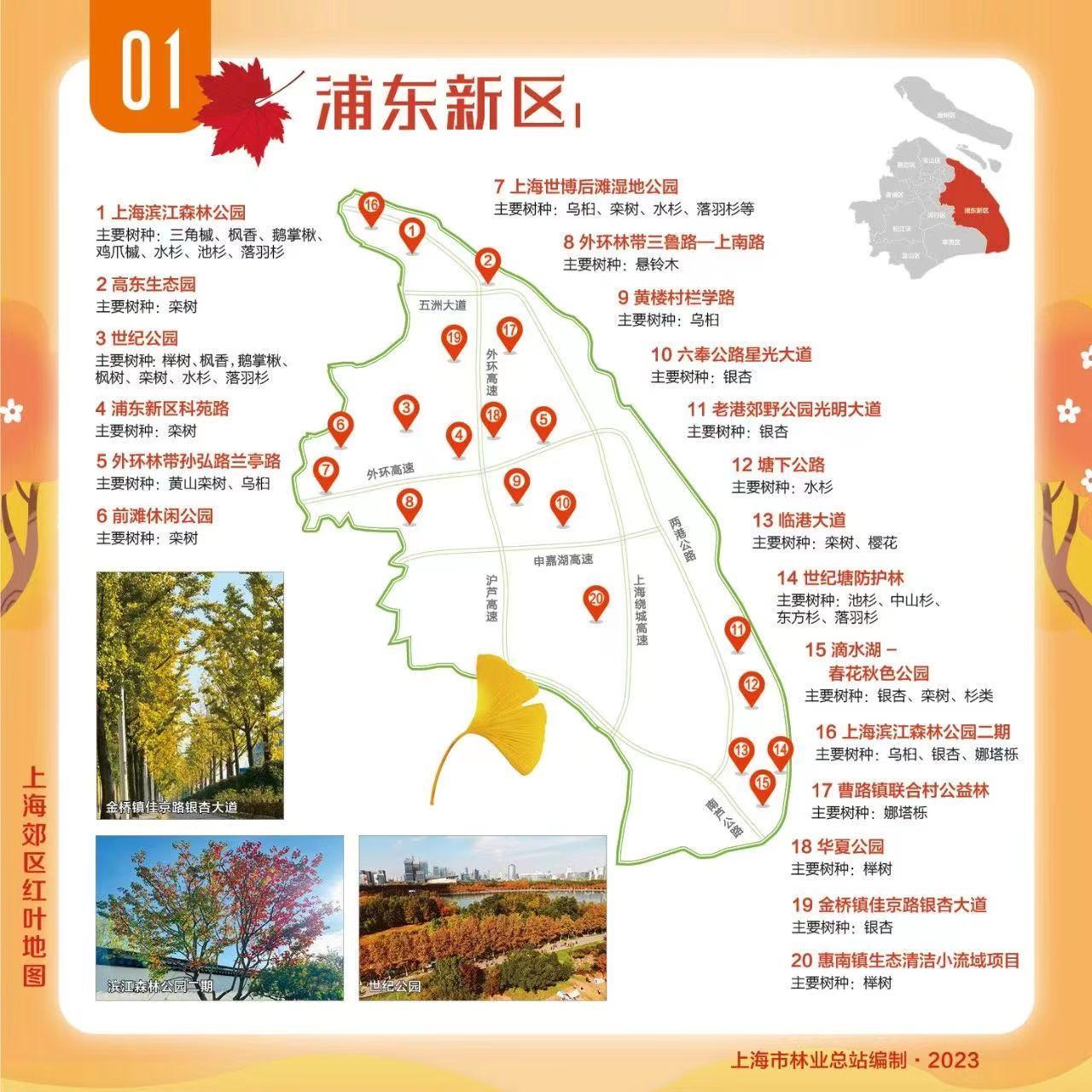 为大家送上郊区红叶地图,包含青浦、崇明、松江等9个郊区,让我们一起欣赏乡村郊野的“美拉德”色彩!