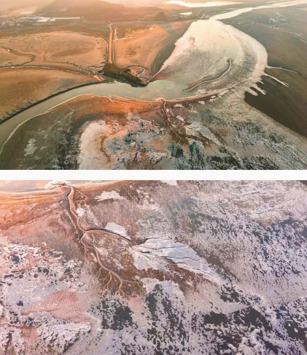 昨天(12月23日)清晨,在海宁市黄湾镇的钱塘江段滩涂处,出现了罕见的自然现象——江水结冰。