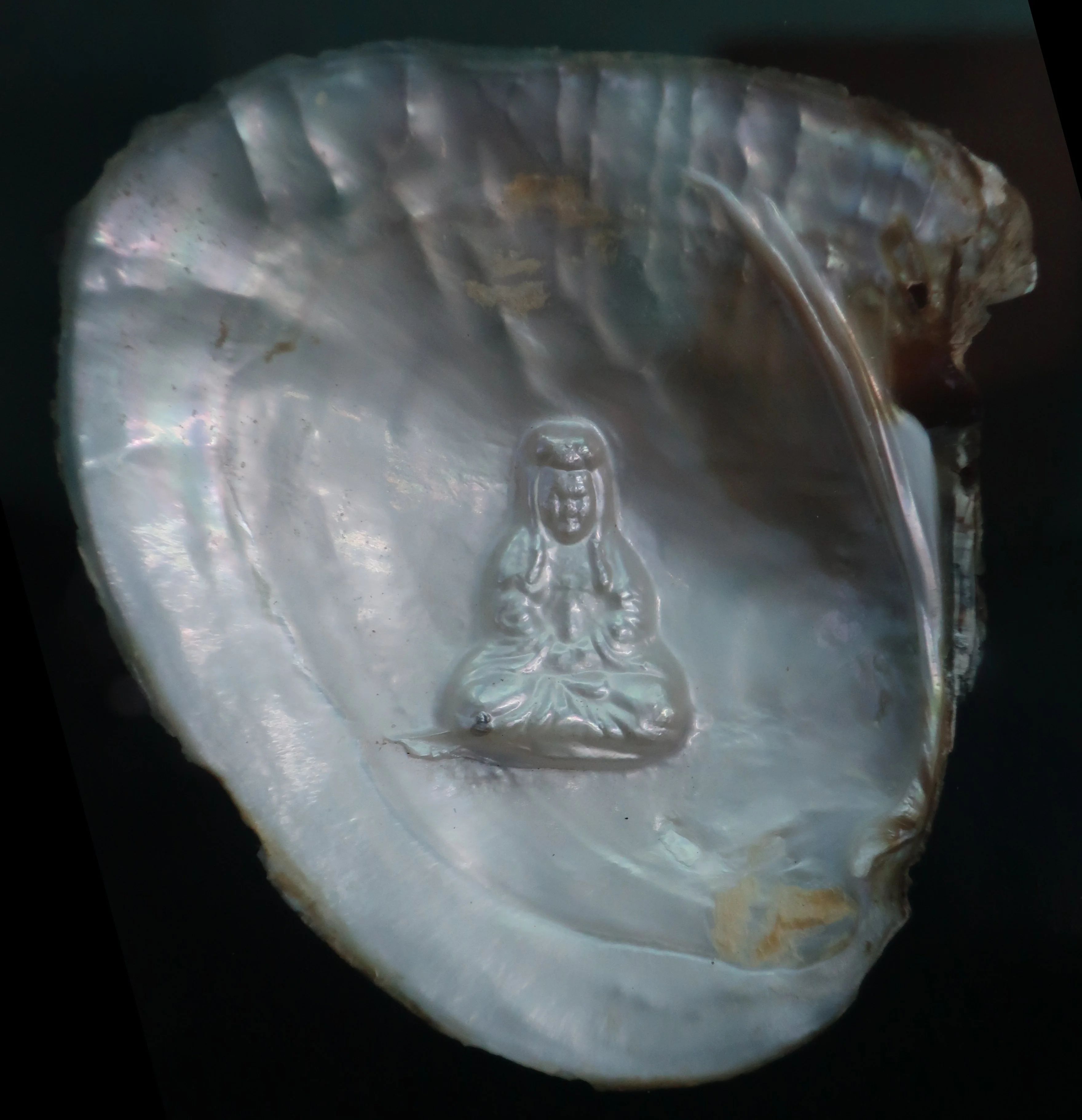 更奇特的是,如果把珍珠的一部分放入贝壳内培养,会形成半球状、水滴形、心形的马贝(Mabe)珍珠!早在 13 世纪,中国古人就已经通过在贝壳里放入小佛像,来培养异形的佛像珍珠。