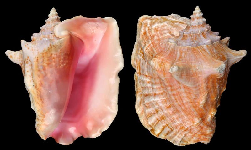 比如,美洲加利福尼亚、佛罗里达和西印度群岛的近海地区,有一种女王凤凰螺,生产的女王凤凰螺珍珠,平均 2 万个才会出现 1 个优质珍珠,从螺到珠都是芭比粉色系,可以看到火焰一样漂亮的纹理!
