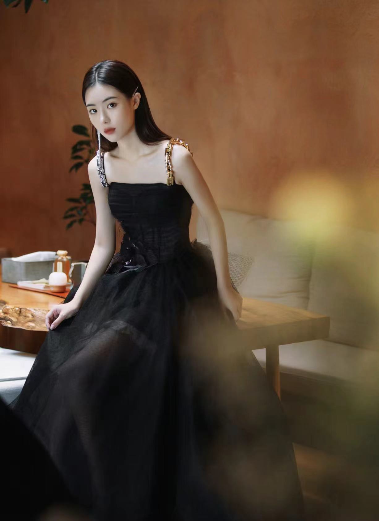 不过,一整片都是黑色有时会显得过于沉闷、呆板与无聊,可以适当露肤,开衩或展示优雅肩颈线,黑色照样能穿出最不寻常的惊艳感。